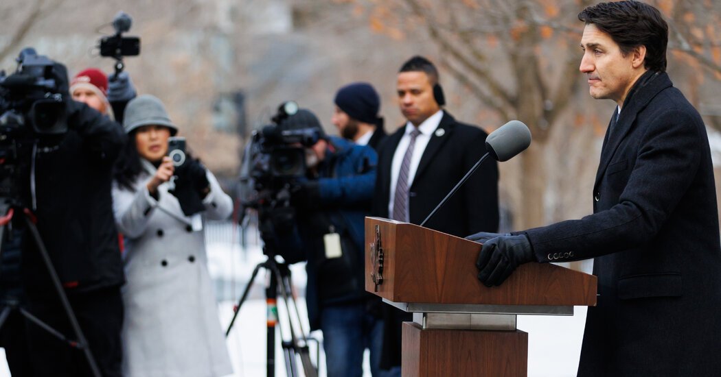 במכנסי צמר קלים, נעלי שמלה ומעיל עליון שהיה פתוח בחלקו, ראש הממשלה ג'סטין טרודו היה לבוש מינימלי למזג האוויר של מינוס 13 מעלות צלזיוס ביום שני כשיצא ממעונו הרשמי כדי להודיע על התפטרותו.
