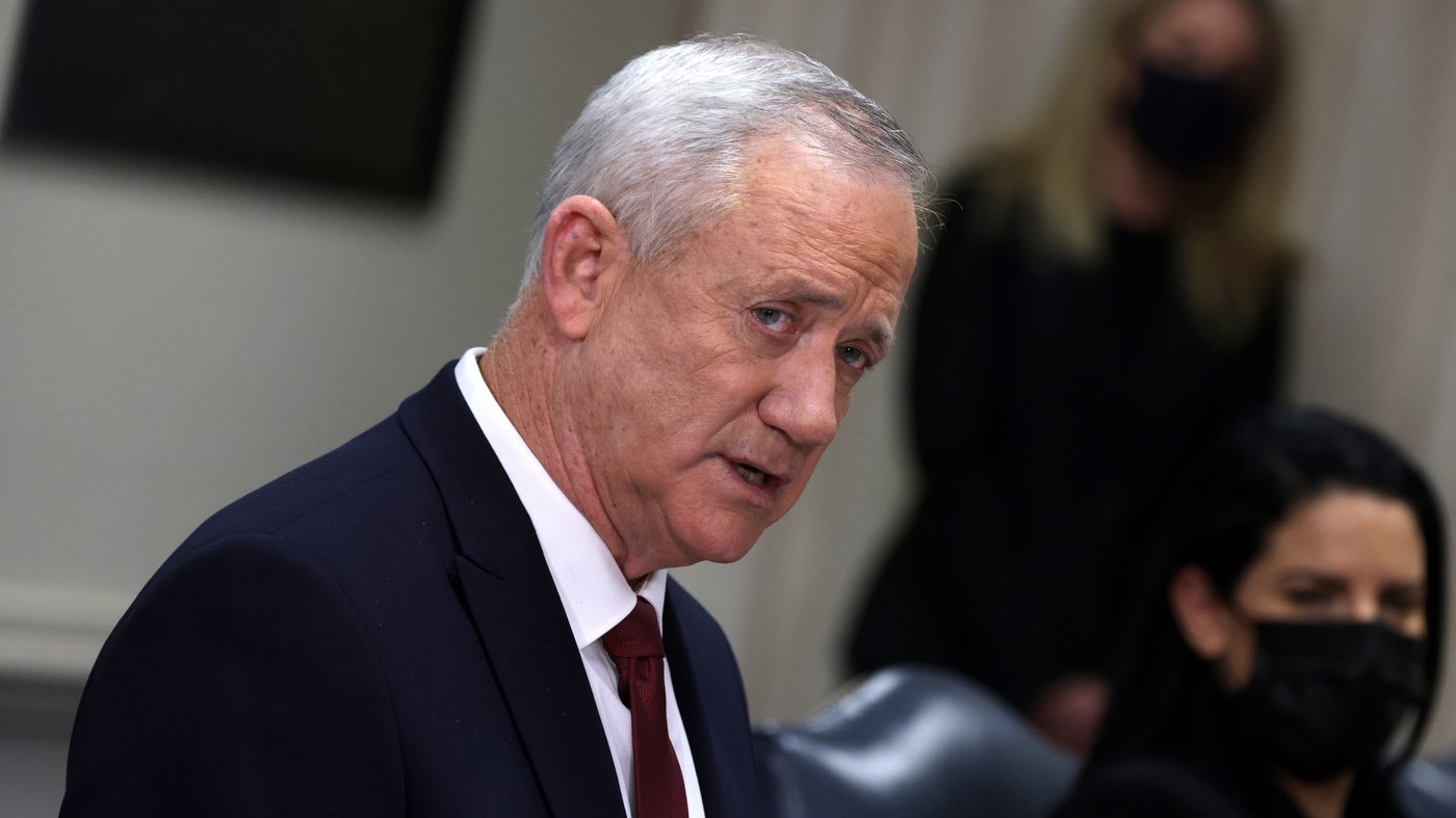 בני גנץ נואם בפנטגון בדצמבר 2021 בארלינגטון, וגנץ, ראש צבא לשעבר ושר הנוכחי בקבינט המלחמה בן שלושת החברים בישראל, אמר כי יפרוש מהממשלה בעוד שלושה שבועות אם ראש הממשלה בנימין נתניהו לא יקדם תוכנית להחליף את חמאס בעזה.