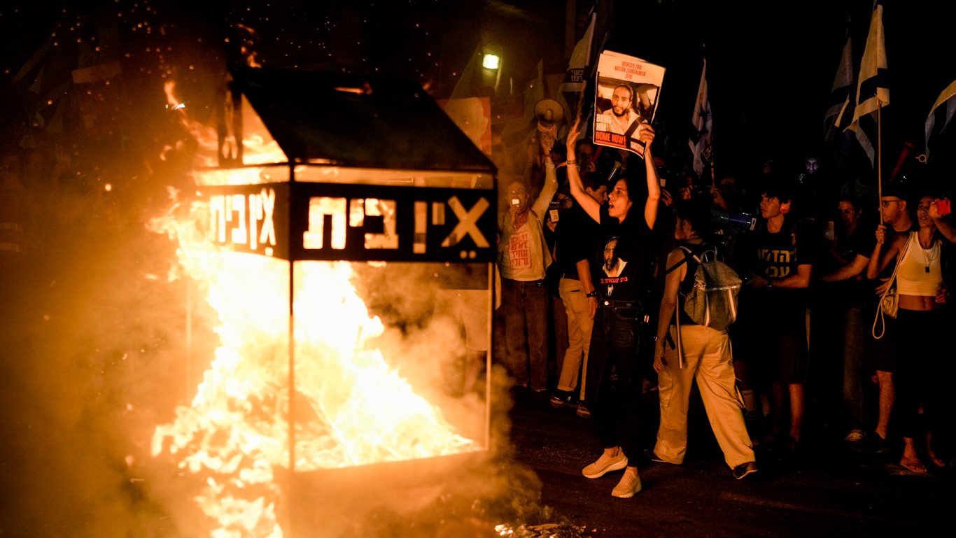 אז החל מינואר 2023 מאות אלפי ישראלים הושק הפגנות המוניות חסרות תקדים שנמשכו עד תחילת המלחמה הישראלית בעזה. הדרישה הקולקטיבית הראשונית של המפגינים, הנתמכת על ידי גנץ והמי-מי של הצבא הישראלי והאליטות הליברליות, הייתה למנוע מנתניהו לשנות את מאזני הכוחות הפוליטיים ששלטו בחברה הישראלית ב-75 השנים האחרונות. עם זאת, עם הזמן, הדרישות הפכו לפזמון הקולקטיבי של שינוי המשטר.