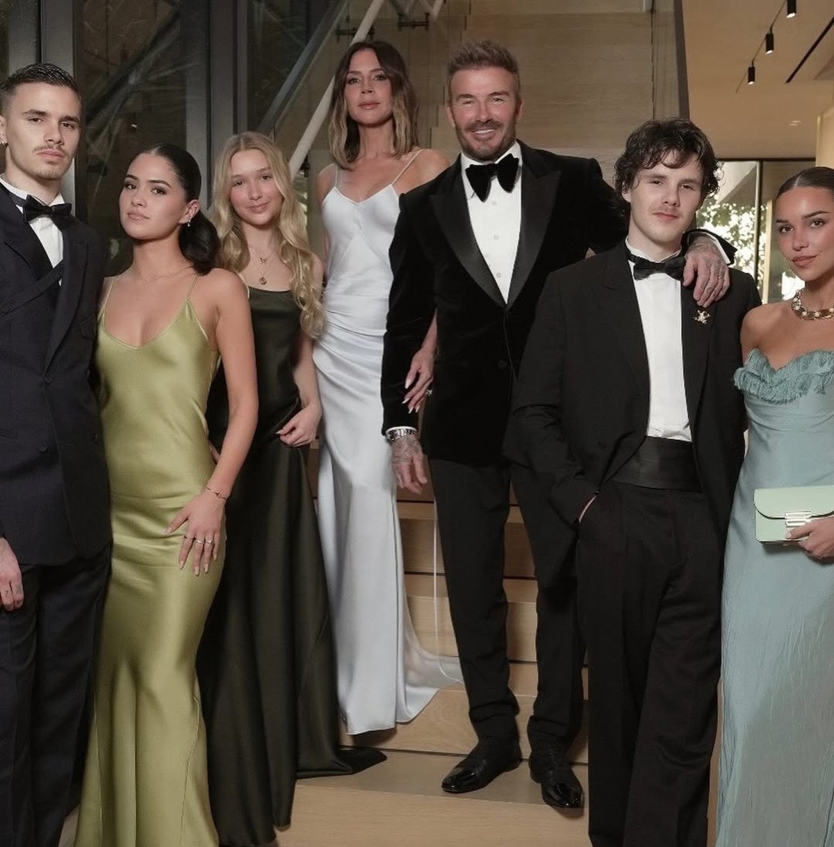 דיוויד הוכיח שהוא עדיין במיטבו בטוקסידו קטיפה אלגנטי, וויקטוריה, שחגגה את יום הולדתה ה-50 בשנה שעברה, הרשימה בשמלה לבנה עם רצועות דקות שהדגישה את גזרתה המושלמת.