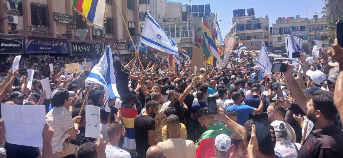 במחוז א־סווידא שבדרום סוריה נערכו אתמול הפגנות גדולות שבהן קראו משתתפים ל"עצמאות מלאה" ו"להגדרה העצמית". המפגינים הניפו את דגלי העדה הדרוזית, לצד שלטים שקראו להוצאת כוחות הביטחון הסורי מהאזור, ואף חלקם הניפו דגלי ישראל והביעו תודה לה על סיוע צבאי והומניטרי.