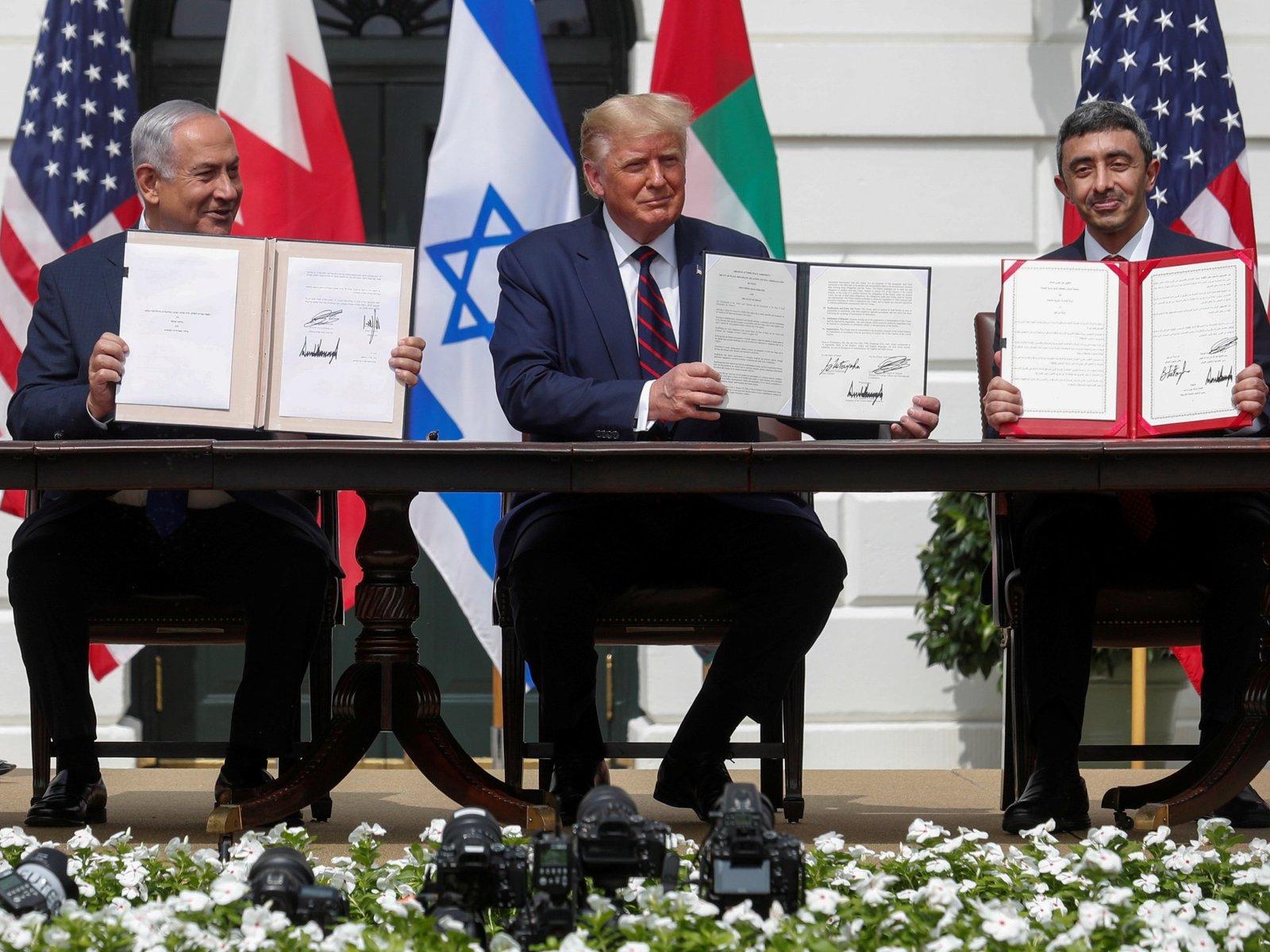 במהלך כהונתו הראשונה בשנת 2020, טראמפ הבטיח סדרת עסקאות, המכונה הסכמי אברהם, כדי לקבוע קשרים דיפלומטיים רשמיים בין ישראל למספר מדינות ערב, כולל איחוד האמירויותבחריין ומרוקו.