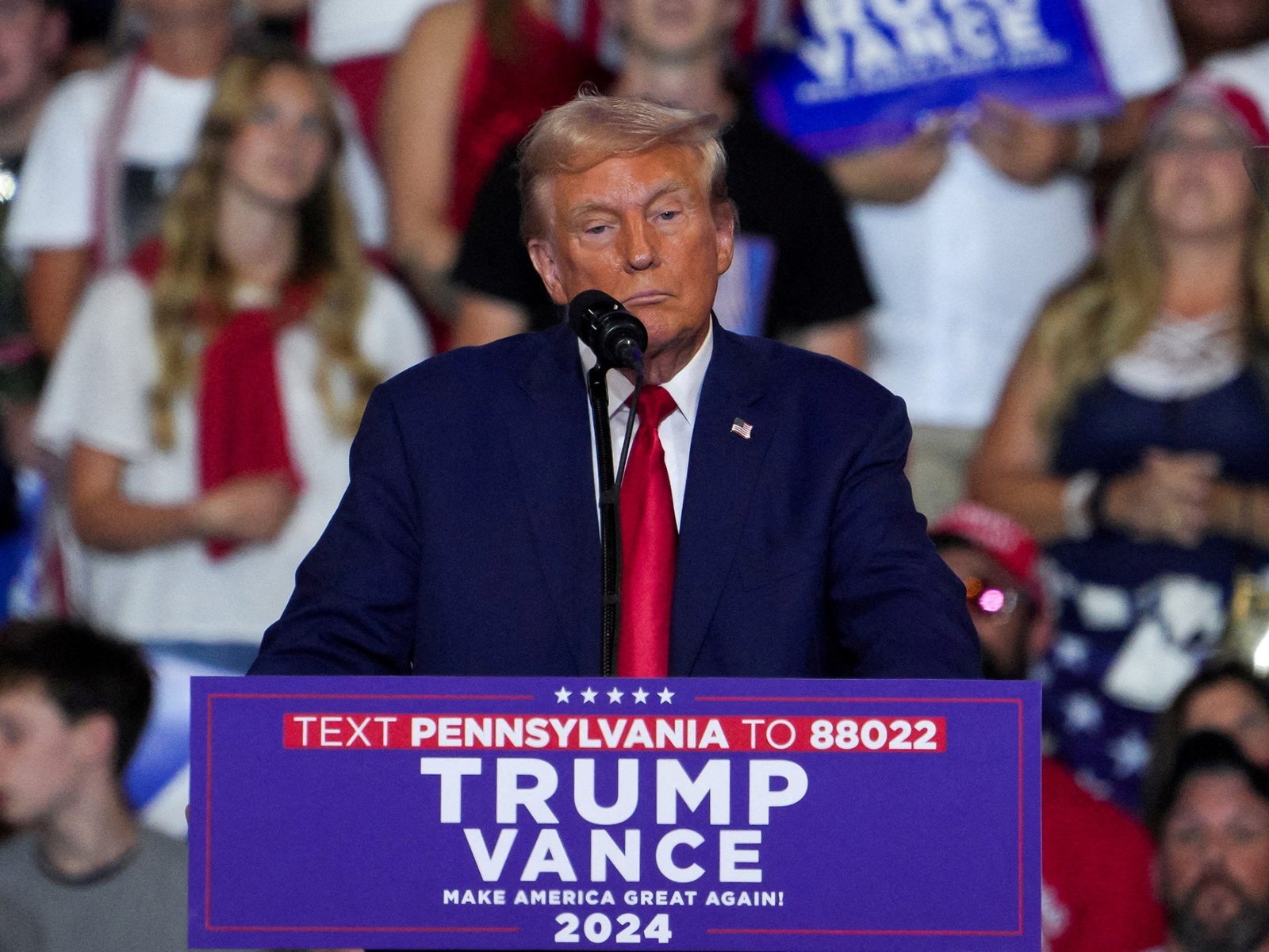 טראמפ גם טען כוזב בשבוע שעבר שתצלום אמיתי המראה אלפי תומכים משתתפים בעצרת מסע הבחירות שנערכו על ידי האריס ובן זוגה טים וולץ בהאנגר מטוסים בדטרויט נוצרה בינה מלאכותית.