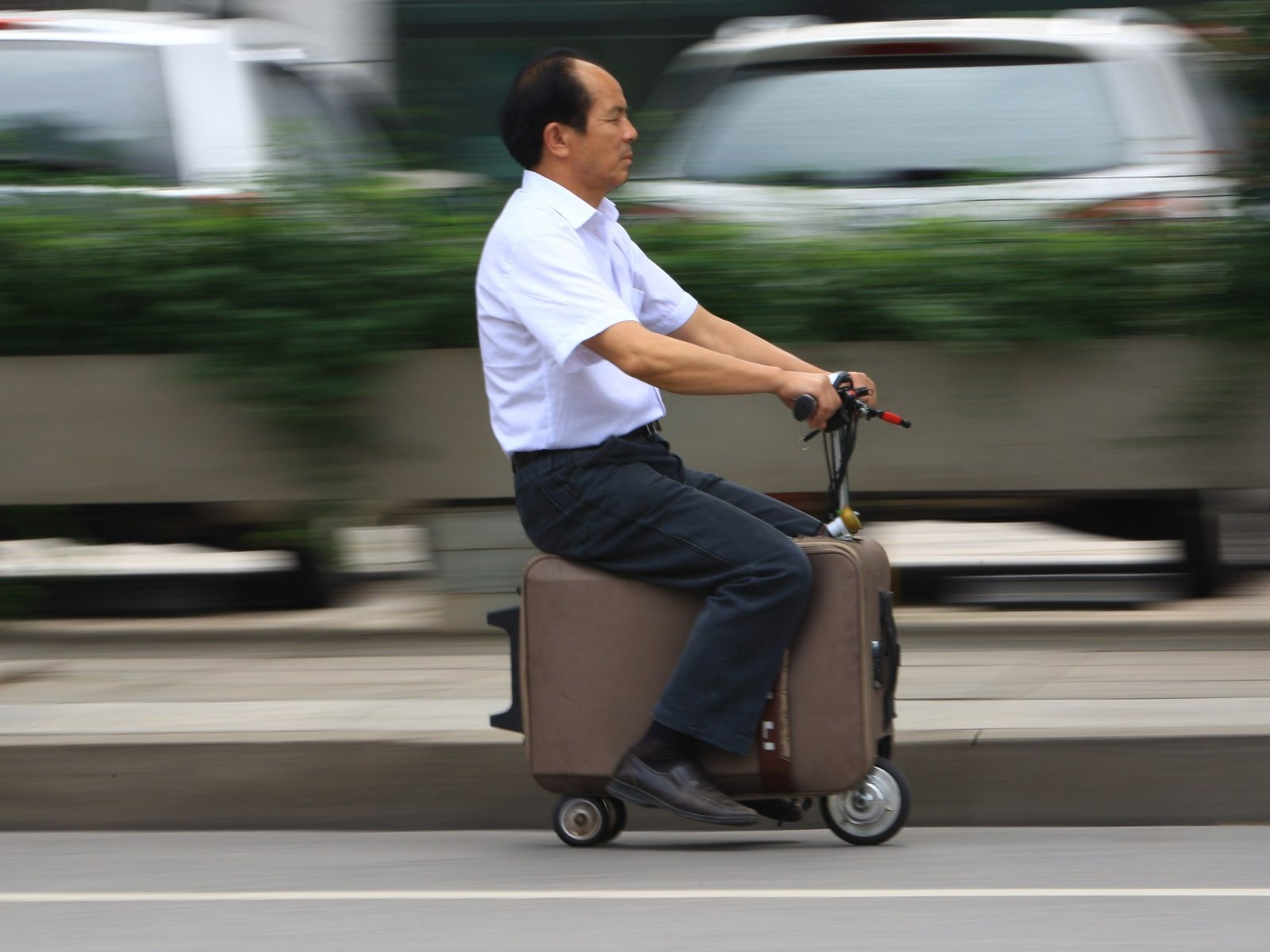ביוני, אישה סינית הפכה לאדם הראשון שנקנס על כך שנסעה על מזוודה על מדרכה באוסקה ללא רישיון. האישה, סטודנטית ביפן, נראתה על ידי המשטרה כשהיא רוכבת על מזוודה חשמלית בעלת שלושה גלגלים על מדרכה בחודש מרץ.