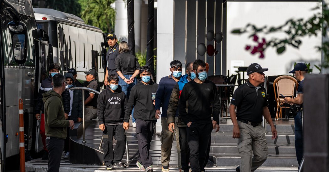 כמעט 100 מהגרים שגורשו לאחרונה על ידי ארצות הברית לפנמה, שם הם היו נעולים במלון, הועמסו על אוטובוסים ביום שלישי בערב ועברו למחנה מעצר בפאתי הג'ונגל, כך אמרו כמה מהמהגרים.