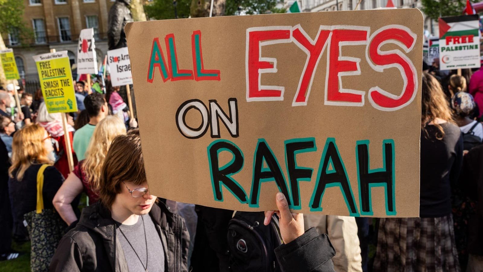 בעוד כוחות ישראליים ממשיכים בהתקדמותם במתקפה קרקעית על העיר רפיח הצפופה ברצועת עזה, קמפיין בן חודשים עם הסיסמה "כל העיניים על רפיח" תפס קיטור, במיוחד במערב אירופה, אוסטרליה והודו. קריאה למודעות למלחמה המתמשכת מצד פעילים וקבוצות הומניטריות.