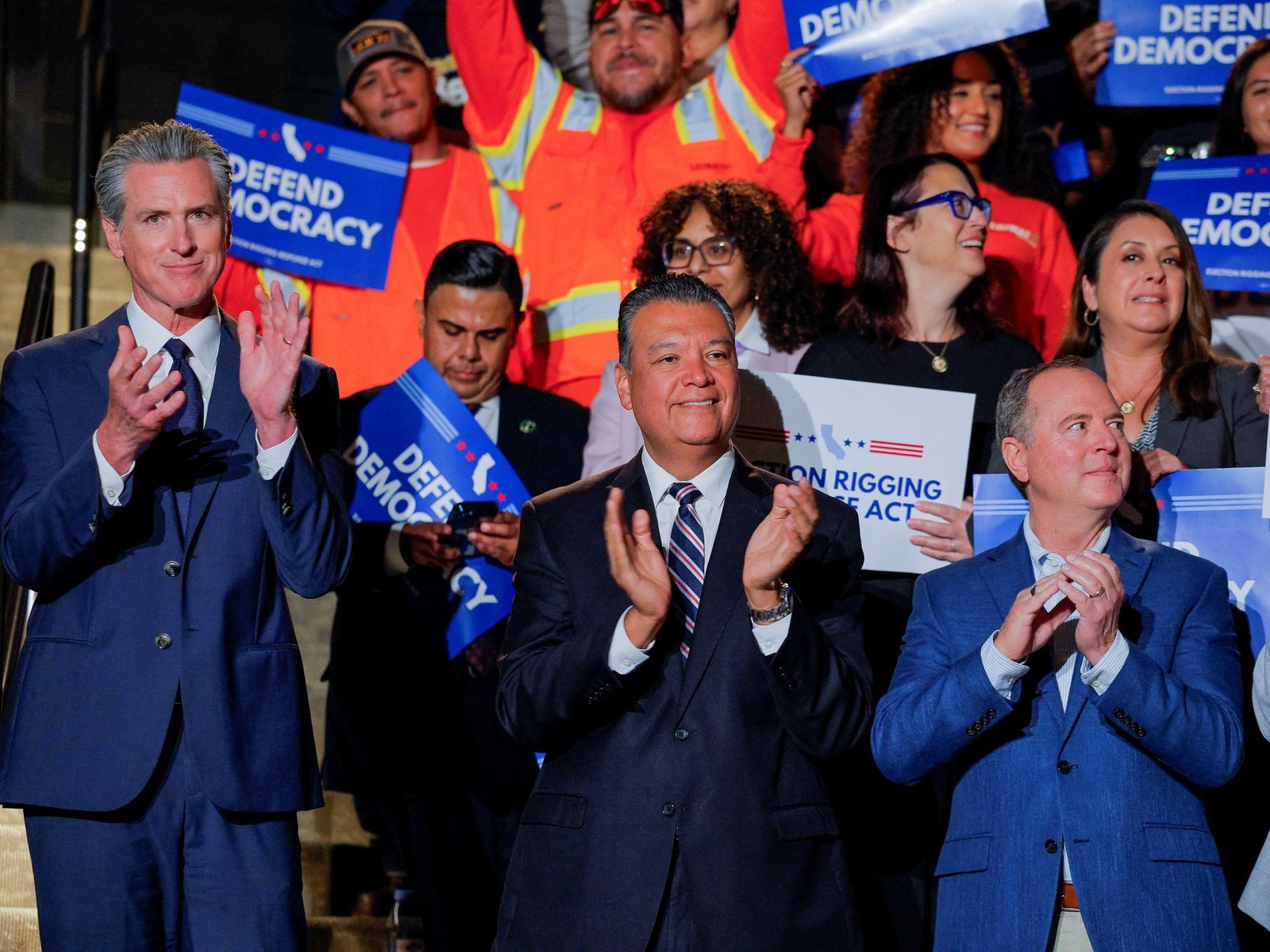 הוא הדגיש כי בניגוד לטקסס, זה יהיה על המצביעים בקליפורניה לאשר או להפיל את המפות החדשות, וכי הם יתקדם רק אם טקסס ומדינות אחרות יתקדמו עם מאמצי המחוזות הפרטיזניים שלהם.