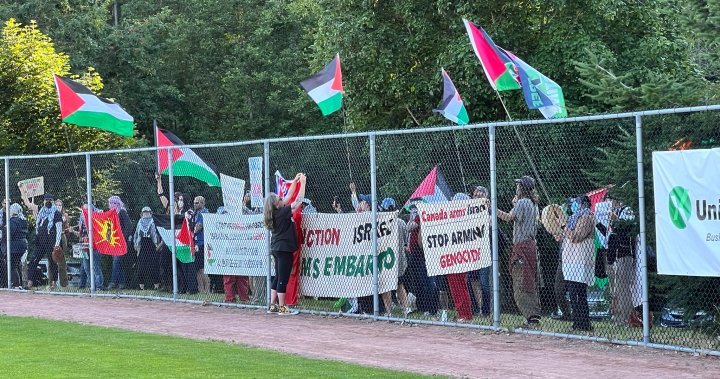המחאה קודמה באינטרנט על ידי סניף ונקובר של רשת Samidoun Prisoner Solidarity Network, אותה קבוצה שהוקלטה מתקשרת ל-7 באוקטובר חמאס לתקוף"הירואי ואמיץ."