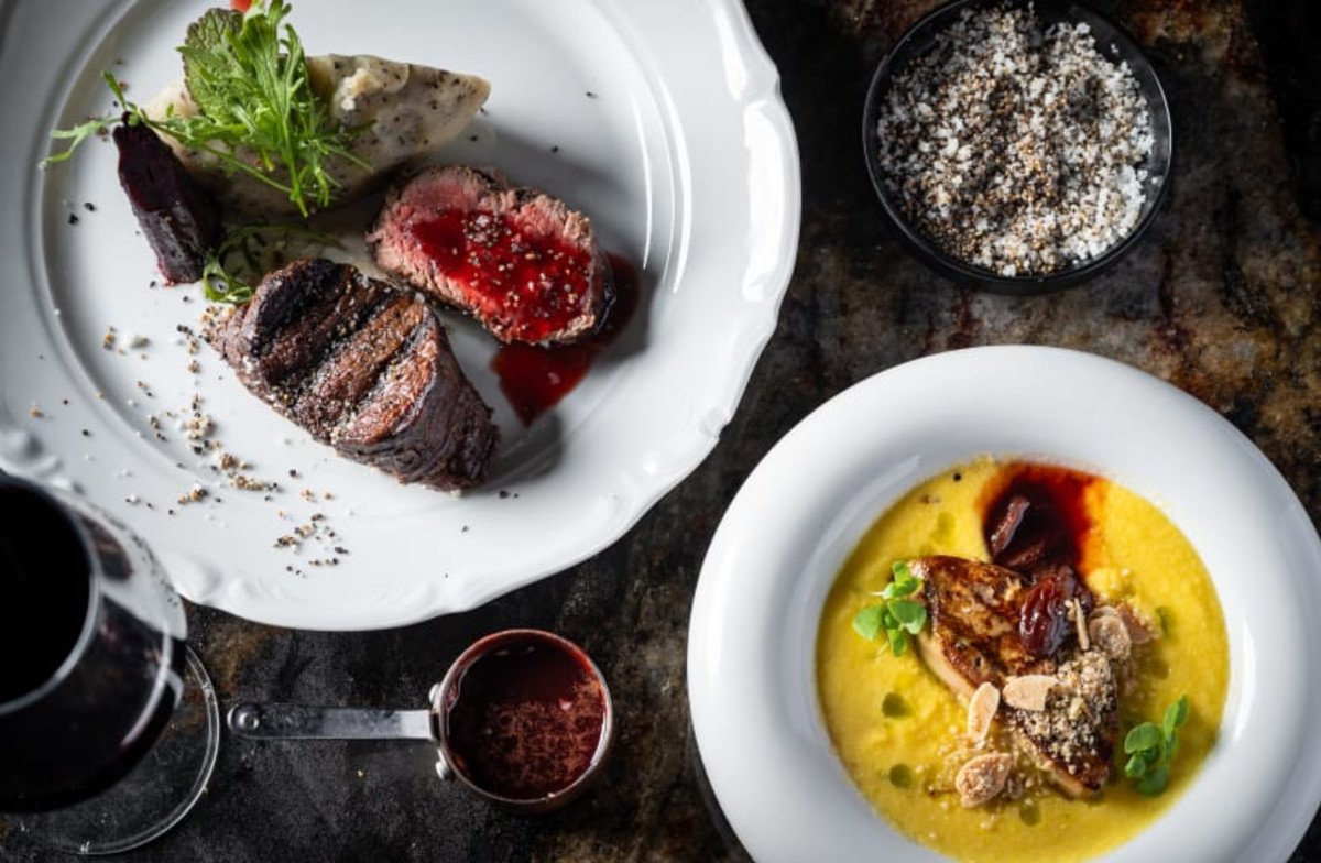 התפריט מצומצם יחסית עם תשע מנות ראשונות ושבע מנות עיקריות, בנוסף למנות מתחלפות. המנות המעניינות כוללות בקלוואה עגל (68 ₪) עם טחינה, סילאן וקרם קוקוס, וקפלטי סלק (78 ₪) בראגו פטריות. הלחם האיטלקי (28 ₪) נאפה במקום עם מלח ורוזמרין. במנות העיקריות, האנטריקוט מיושן (169 ₪) – נתח של 300 גרם על הגריל, מוגש עם קונפי שום – היה מצוין ובמחיר סביר. פילה סלמון ניסואז (128 ₪) הוגש עם לימון כבוש וחריסה, צלוי בטאבון. לקינוח, הרוטונדו (52 ₪) מציע שכבות של קרמל וטופי עם מרקמים פריכים.