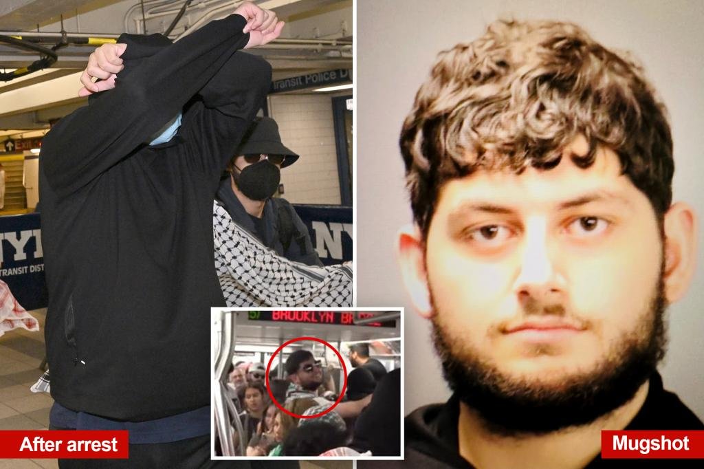 המפגין האנטי-ישראלי שהסתער לכאורה על קרון רכבת תחתית "תפוח גדול" ודרש מ"ציונים" להרים ידיים, נעצר ביום רביעי לאחר מצוד בן שבועות, אמרו שוטרים.