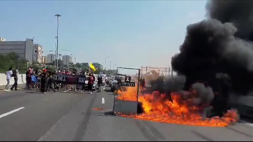 סיפור: :: שריפות בוערות בכבישים המהירים בישראל כאשר מפגינים נגד הממשלה חוסמים כבישים