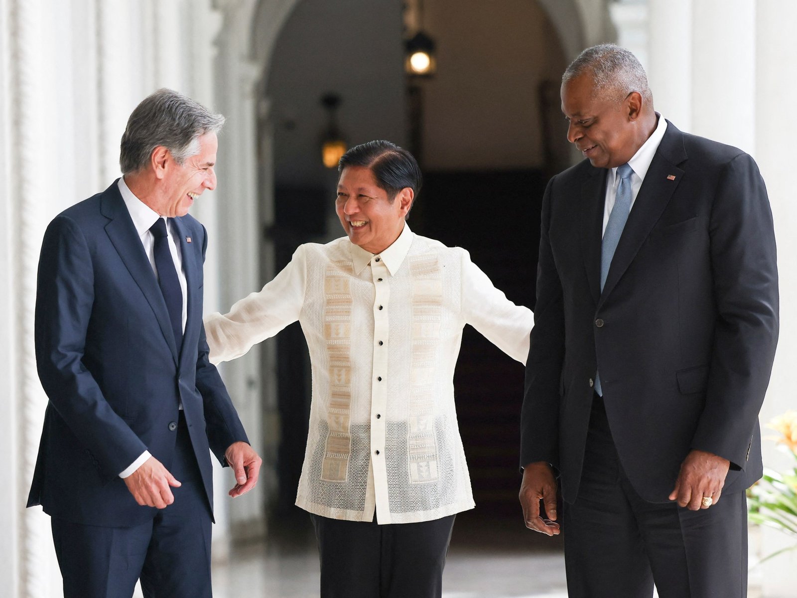 ביום שלישי, הוא בירך את בלינקן ואוסטין בארמון מלאקנאנג לקראת פגישות עם עמיתיהם הפיליפינים, אנריקה מנלו וג'ילברטו תאודורו. זו הפעם הראשונה שמנילה מארחת את מה שמכונה "2+2" בין שתי המדינות.