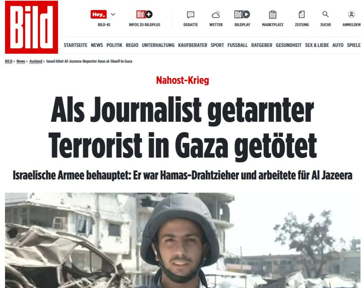 העיתון הגרמני הגדול באירופה, "בילד", פרסם הבוקר (שני) כתבה על המחבל והעיתונאי אנאס אל שריף אשר חוסל ברצועת עזה, וכתב כי "מחבל מחופש לעיתונאי נהרג ברצועת עזה".