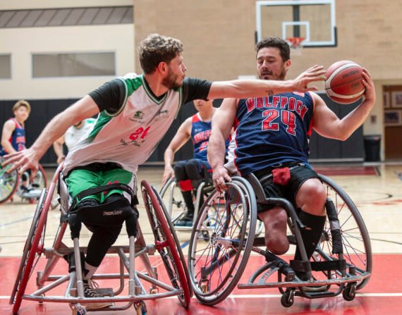 קבוצת הכדורסל של Israel ParaSport Center משחקת נגד Wolfpack של סן דייגו ב-Merage JCC ממחוז אורנג' באירווין, קליפורניה במרץ 2024. באדיבות דיוויד וולברט