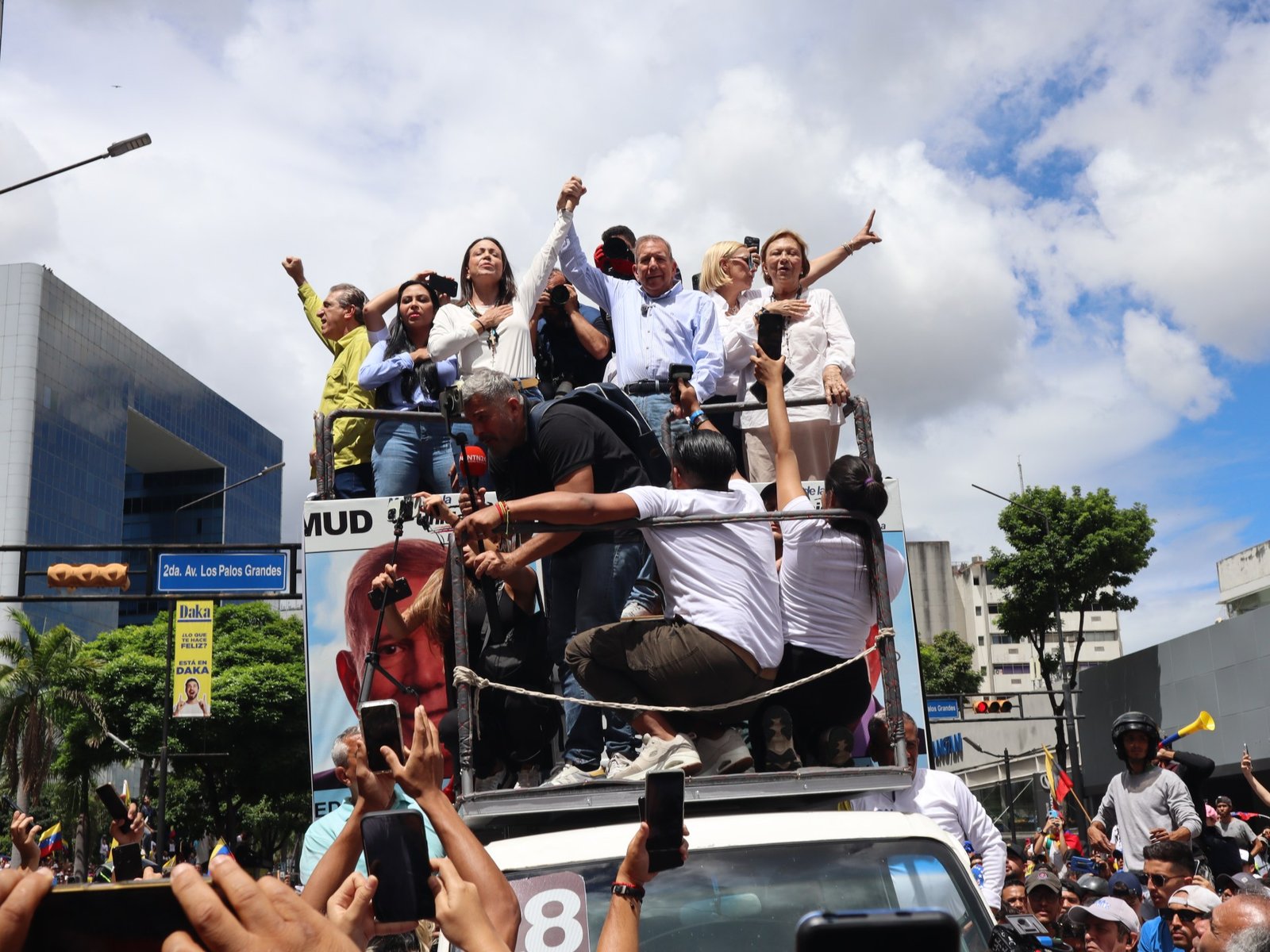 המשאית הזו נשאה את מועמד האופוזיציה אדמונדו גונזלס אורוטיה, אחד משני אנשים טוענים לניצחון בבחירות לנשיאות ביום ראשון.