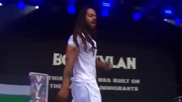 During Bob Vylan’s performance, lead singer Bobby Vylan led chants of “Death to the IDF” as a Palestinian flag waved on stage. He dedicated one of the songs to “every band using their platform to speak up for the Palestinian people.”