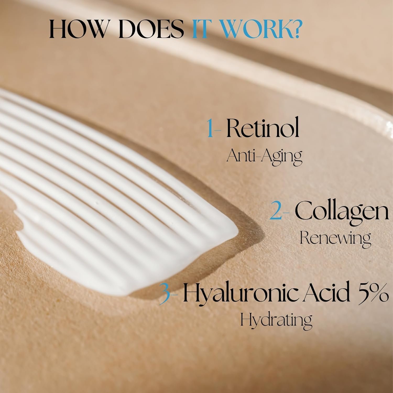 1 Retinol 2 Hyaluronic Acid 3 Collagen