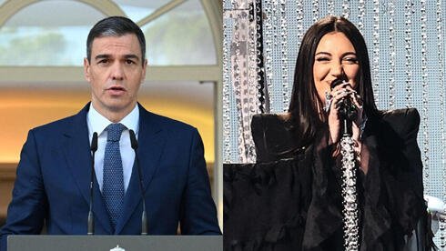 Spanish Prime Minister Pedro Sanchez; Israeli Eurovision contestant Yuval Raphael
