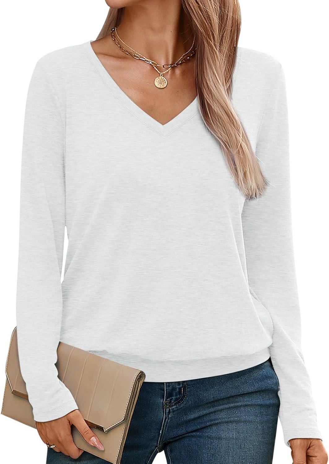 Micticsi Womens V Neck T Shirts Long Sleeve Tops Dressy Casual Tshirts